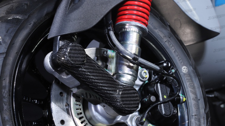 Le parti in carbonio di X-TOP utilizzano la tecnologia di stampaggio in autoclave, utilizzata anche nell'industria aeronautica, e un'esclusiva finitura in vernice a tre strati crea una trama tridimensionale.