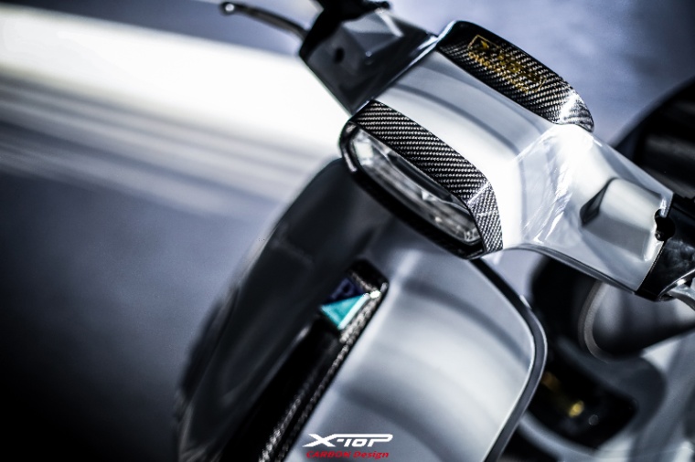 Le parti in carbonio di X-TOP utilizzano la tecnologia di stampaggio in autoclave, utilizzata anche nell'industria aeronautica, e un'esclusiva finitura in vernice a tre strati crea una trama tridimensionale.