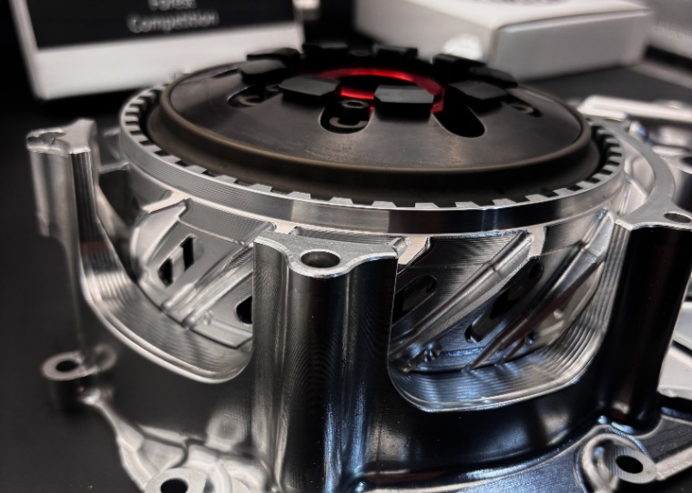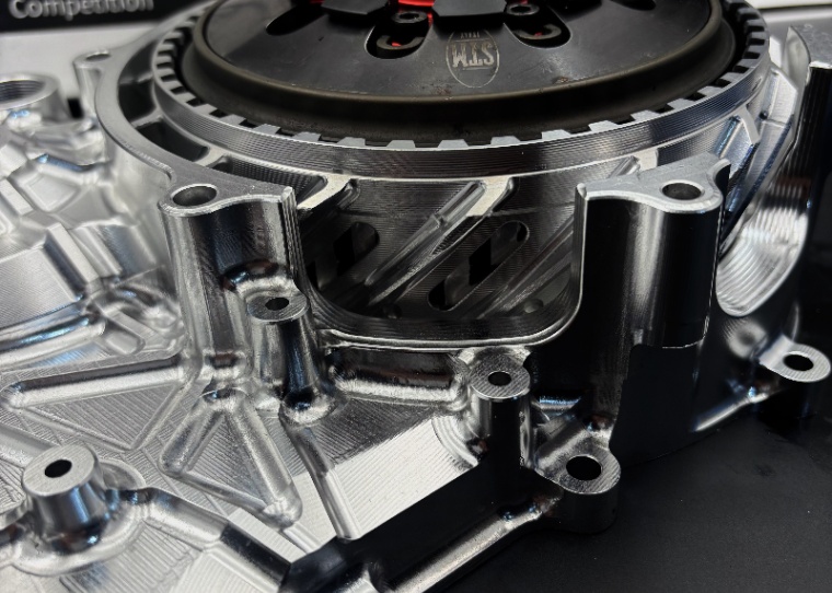 製品は一体型構造のクランクケース+クラッチバスケットで構成されており、精度・強度ともに高い完成度を誇ります。