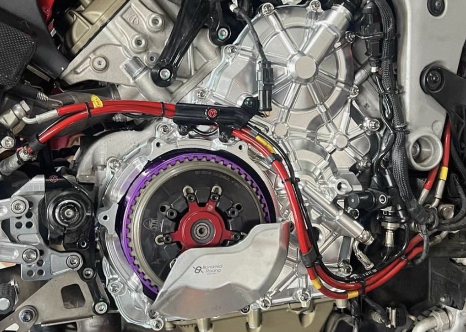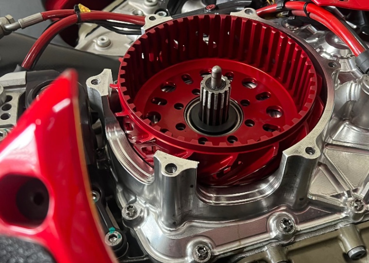 デザインも独特で、乾式クラッチが半分ほど露出する仕様になっており、とてもセクシーな印象。バスケットカラーも指定できるのが嬉しく、今回はパープルを選びましたが、大正解でした。