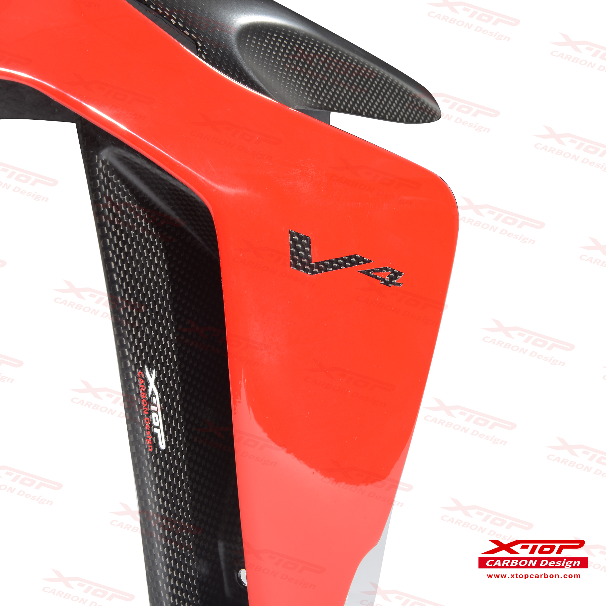 X-TOPのカーボンパーツは、航空産業でも使われるオートクレーブ成形技術を採用し、さらに独自の三層塗装仕上げによって立体感のある質感を生み出しています。